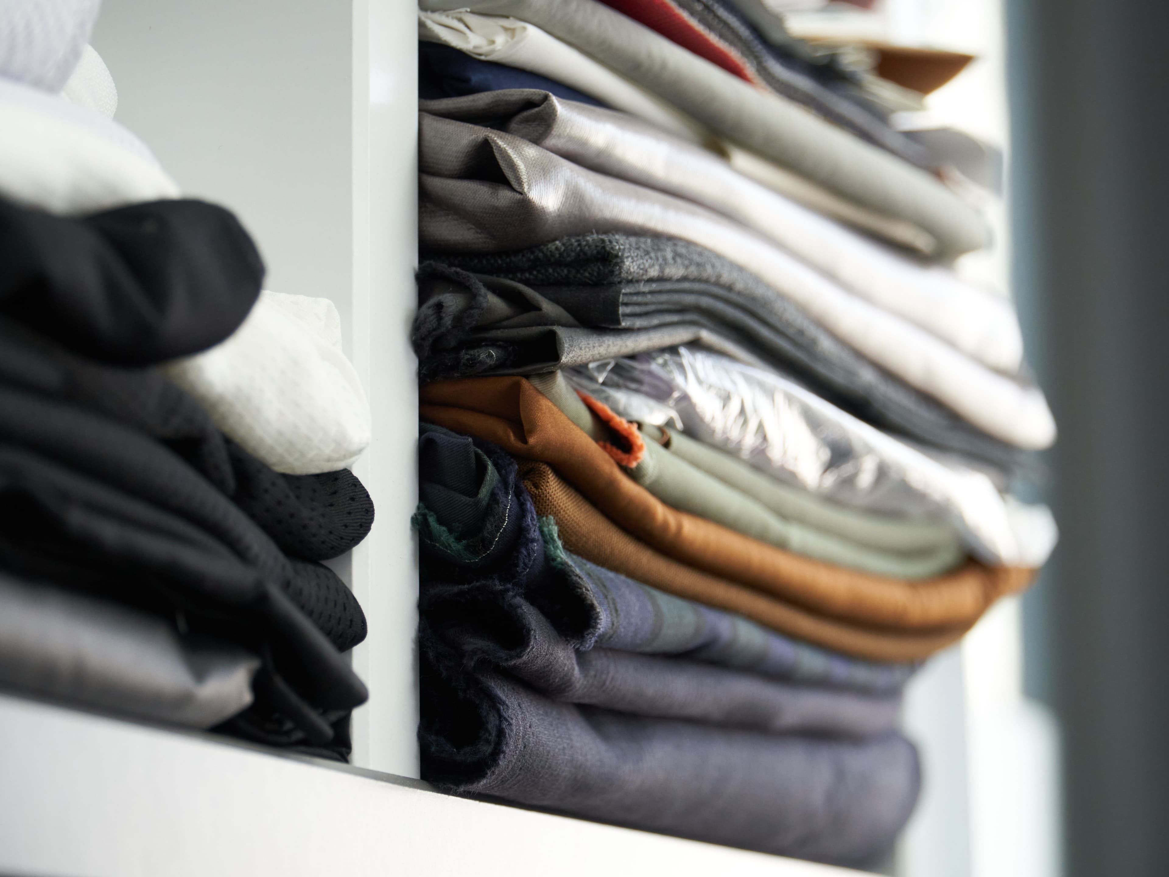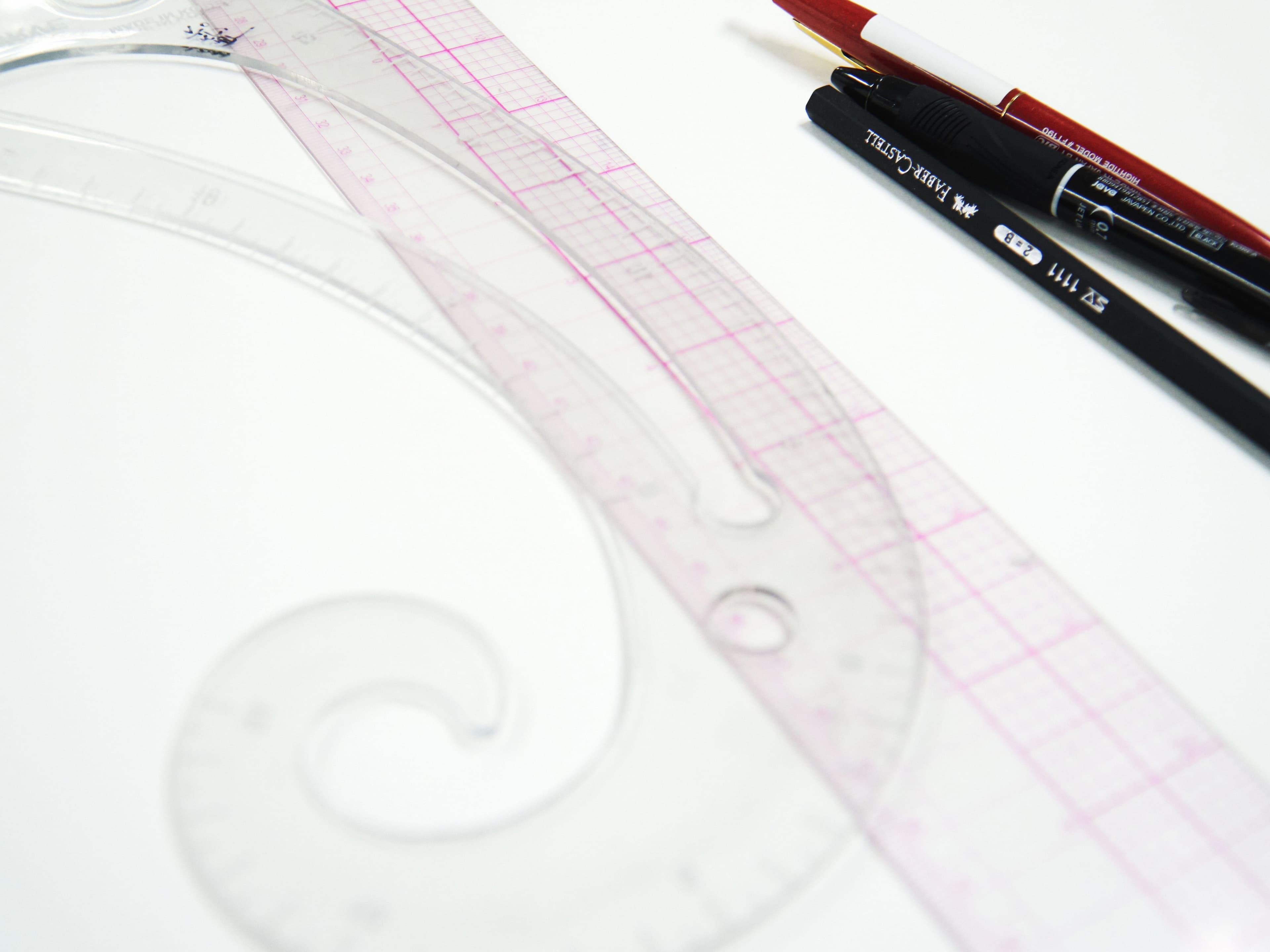 문래동에 위치한 사무실에 놓인 패턴 작업물과 원단.