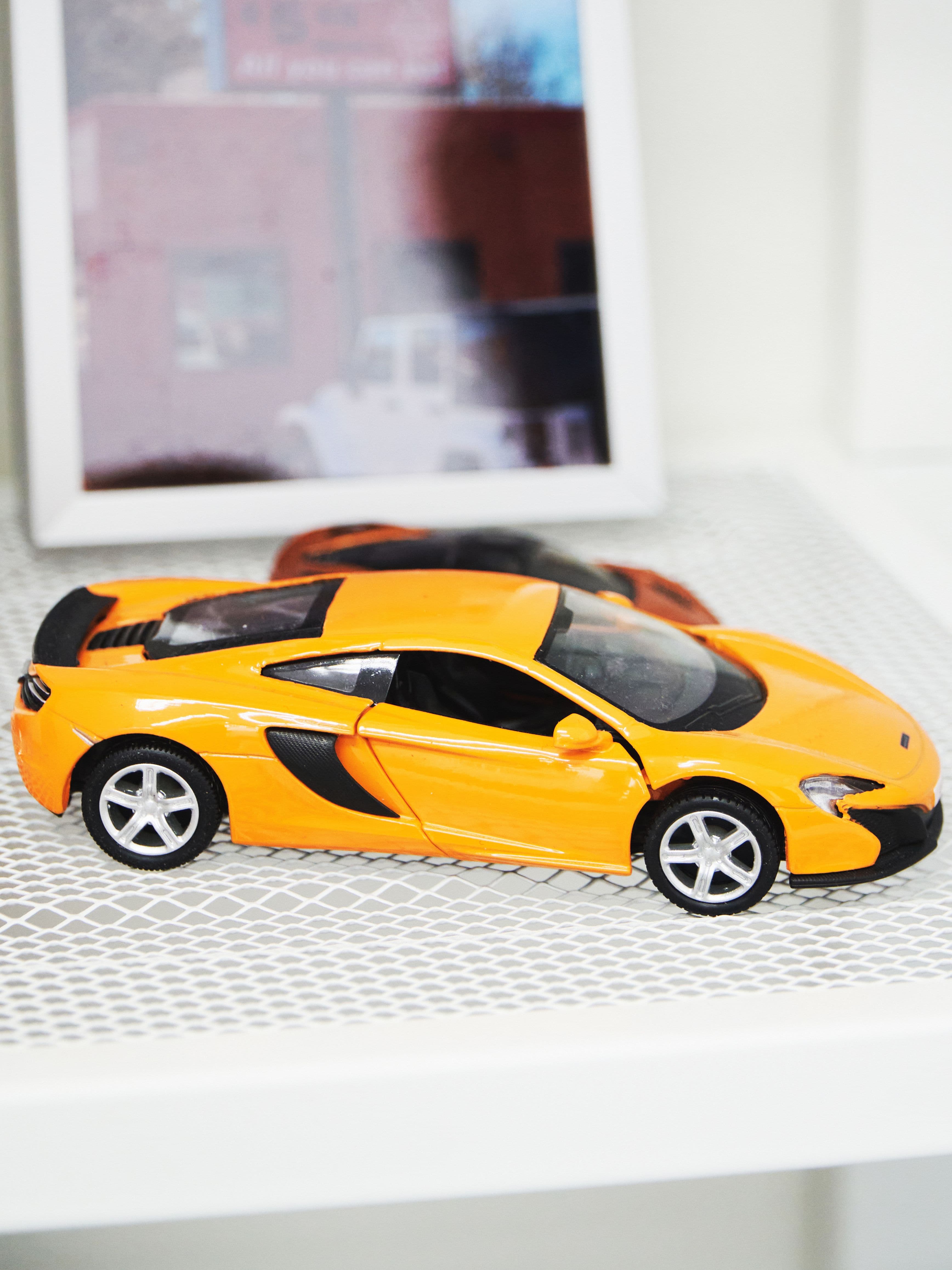 강준혁 대표 사무실에 놓인 맥라렌의 슈퍼카 모형(좌), 맥라린 570S를 모티브로 만들어진 '맥라렌 570S 캡'(우).