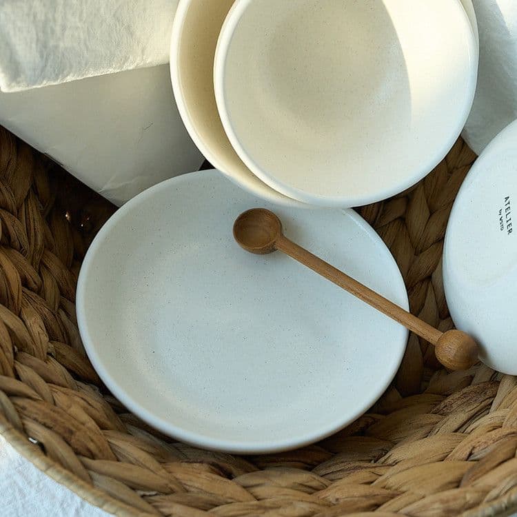 (보형) WSTD가 지향하는 데일리 테이블웨어의 컨셉에 맞게 ‘쓰임이 좋은’ 제품들로 스펙트럼을 확장하고 싶었어요. 테라조(TERAZO) 라인은 간결하며 실용적인 제품으로 타일에 영감을 얻어 만들었죠. 반무광 아이보리 색감에 콕콕 박힌 점이 포인트예요. 가마에 도자기를 구웠을 때 생기는 철분인데요. 보통 단점으로 보고 가리는 경우가 많은데, 있는 그대로 살려봤어요. 음식을 담아보면, 오히려 이 점들이 고급스러운 느낌을 준답니다.