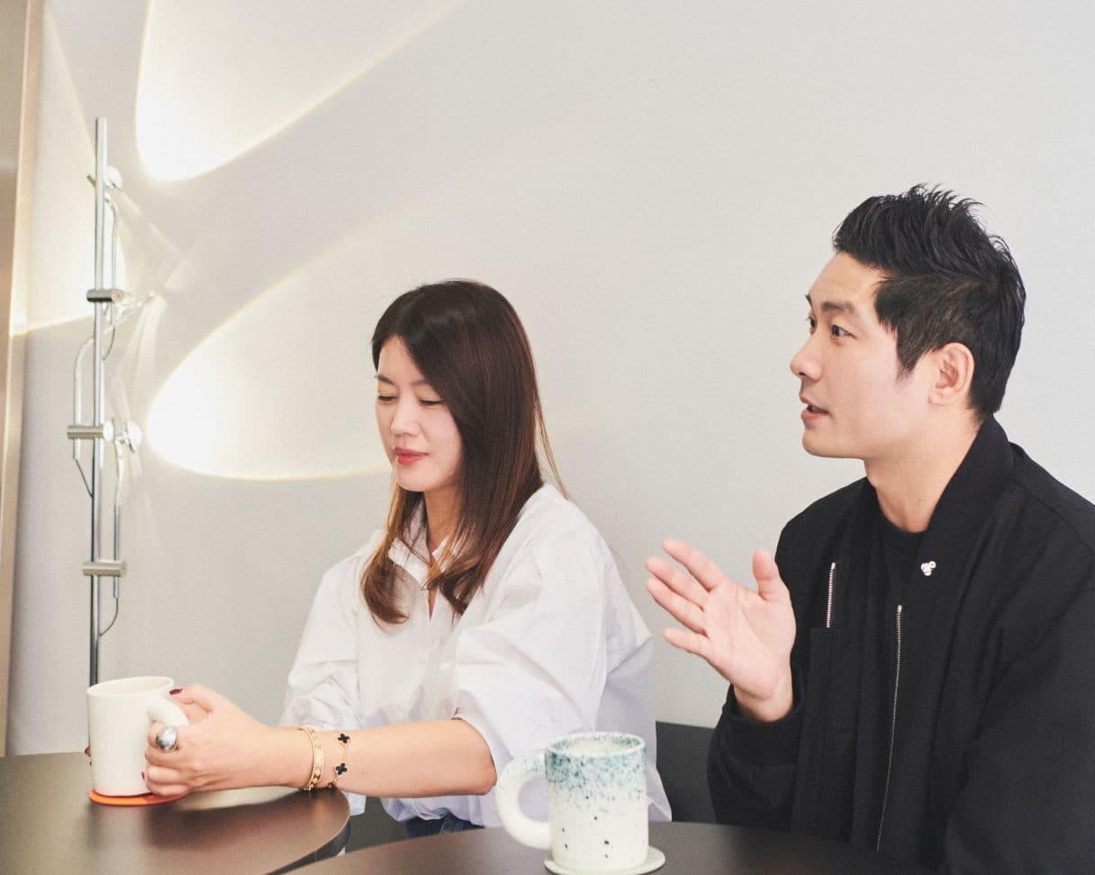 WSTD 성수 쇼룸에서, 이은현 대표(우)와 손보형 크리에이티브 디렉터(좌)