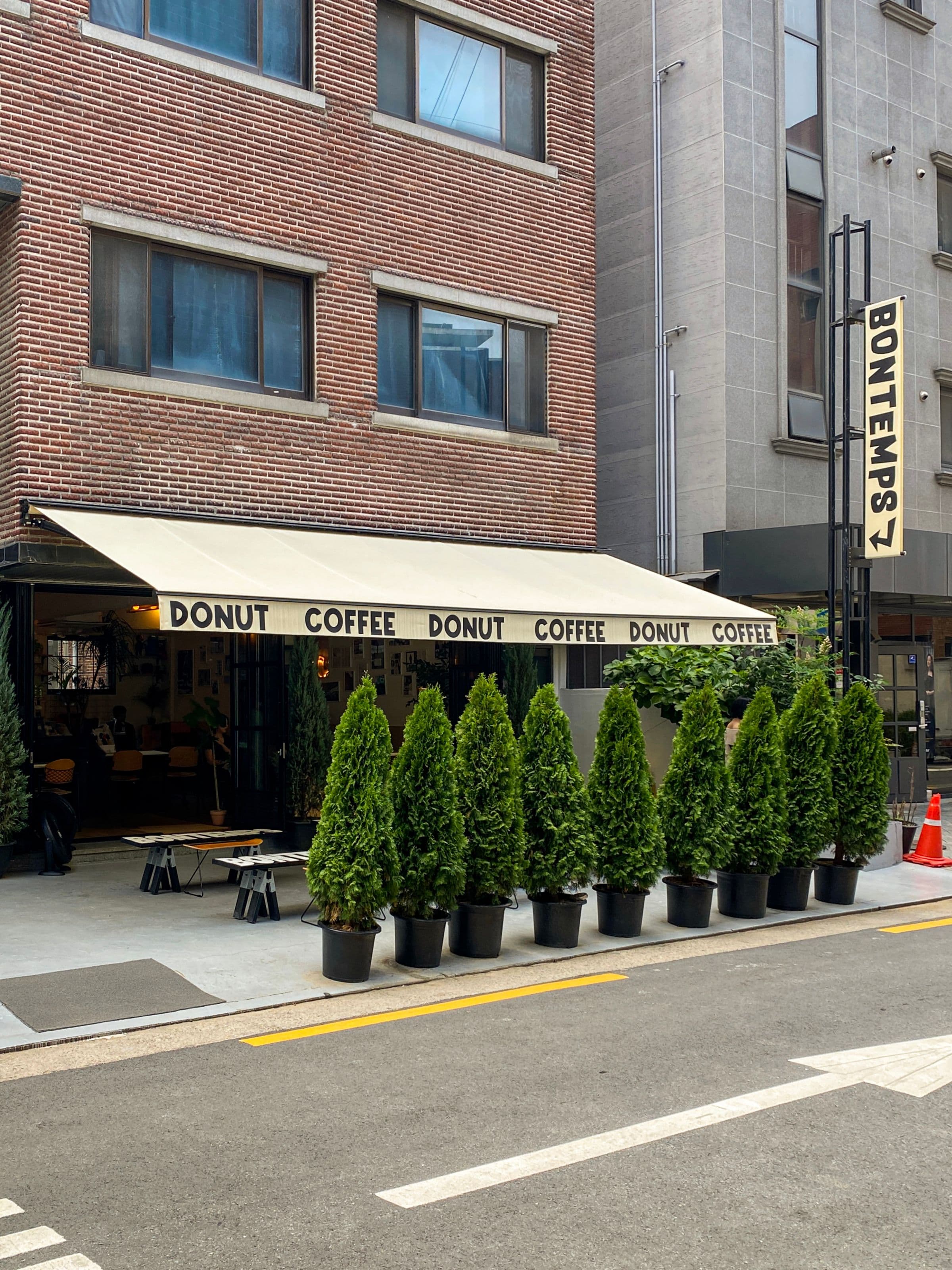 송리단길의 베이커리 봉땅이 지난 3월 말 서울숲에 새 둥지를 틀었습니다. 커다란 나무 화분으로 촘촘히 가려진 야외 좌석 공간에는 검은색 벤치와 스케이트보드로 만든 테이블이 눈길을 끄네요. 활짝 열어놓은 창문과 출입구 덕분에 내부가 훨씬 넓게 느껴집니다. 천연발효종으로 만든 꽈배기 모양의 도넛으로 이름을 알린 봉땅은 피스타치오 크림, 솔티드 캐러멜 등 무려 16가지 맛의 토핑을 고를 수 있는데요. 먹음직스럽고 화려한 비주얼은 물론, 부드럽고 달콤한 맛도 놓치지 않는 봉땅 도넛과 아이스 아메리카노 한 잔이면 당 충전 200% 충분하지 않을까요?