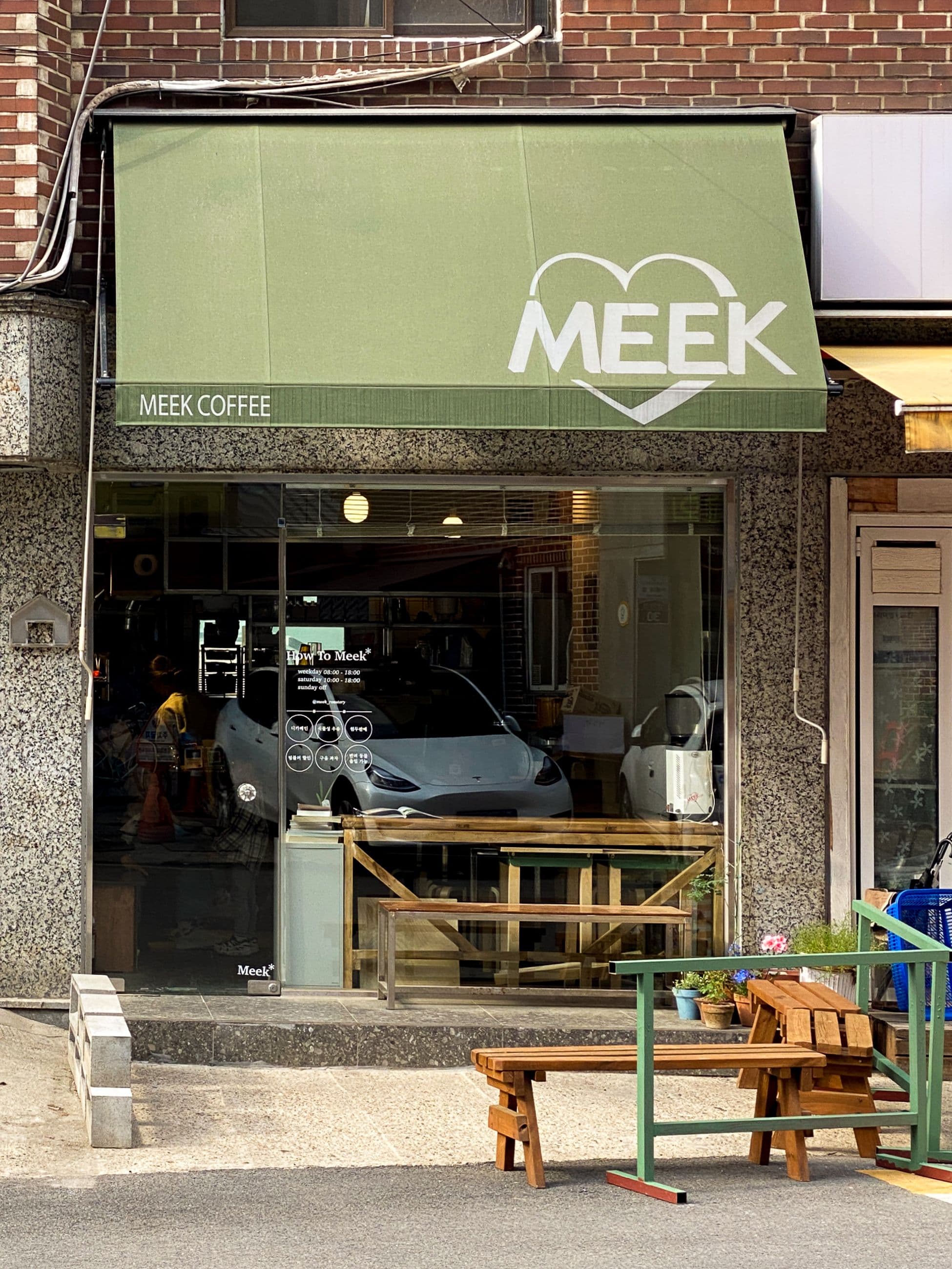 뚝섬역 2번 출구 옆 골목길로 들어서면 교회를 중심으로 오른쪽으로는 아파트 단지가, 왼쪽으로는 층수가 낮은 주택들이 오밀조밀 모여있어요. 주택가로 들어가는 골목 초입에서 미크 로스터리를 만날 수 있는데요. 동네의 작은 쉼터이자 성수동 골목 풍경이 시작되는 이정표처럼 자리하고 있습니다.