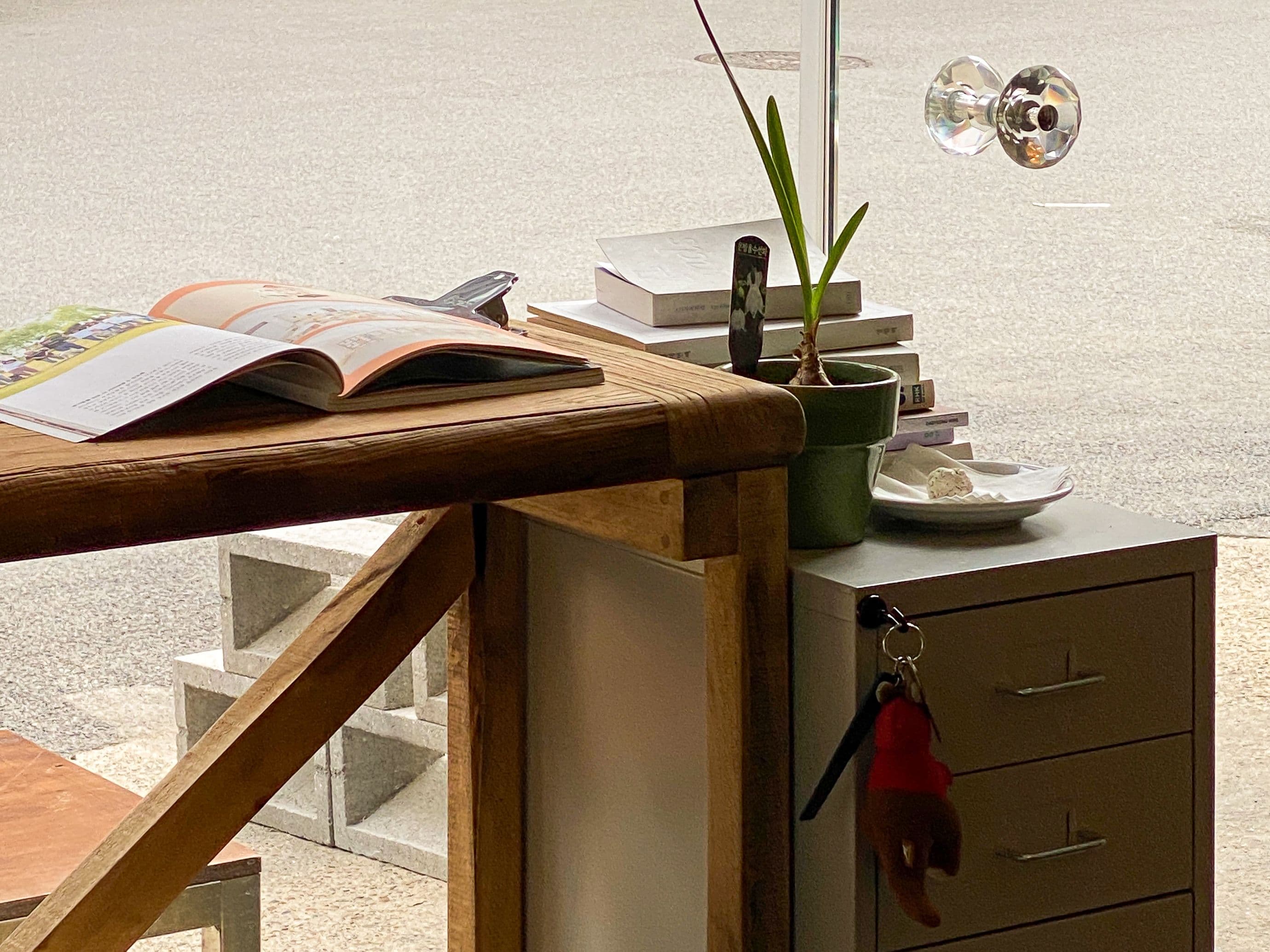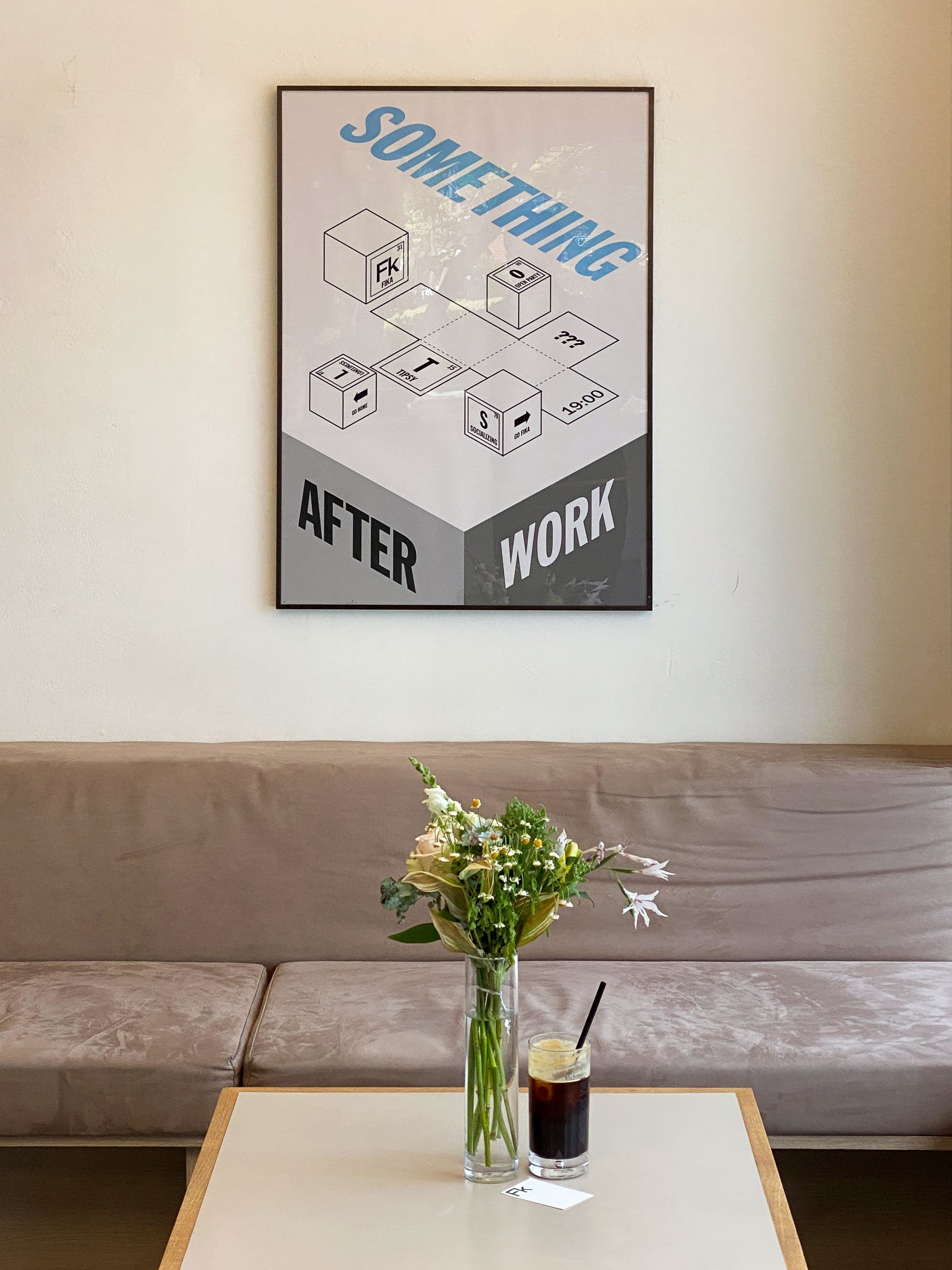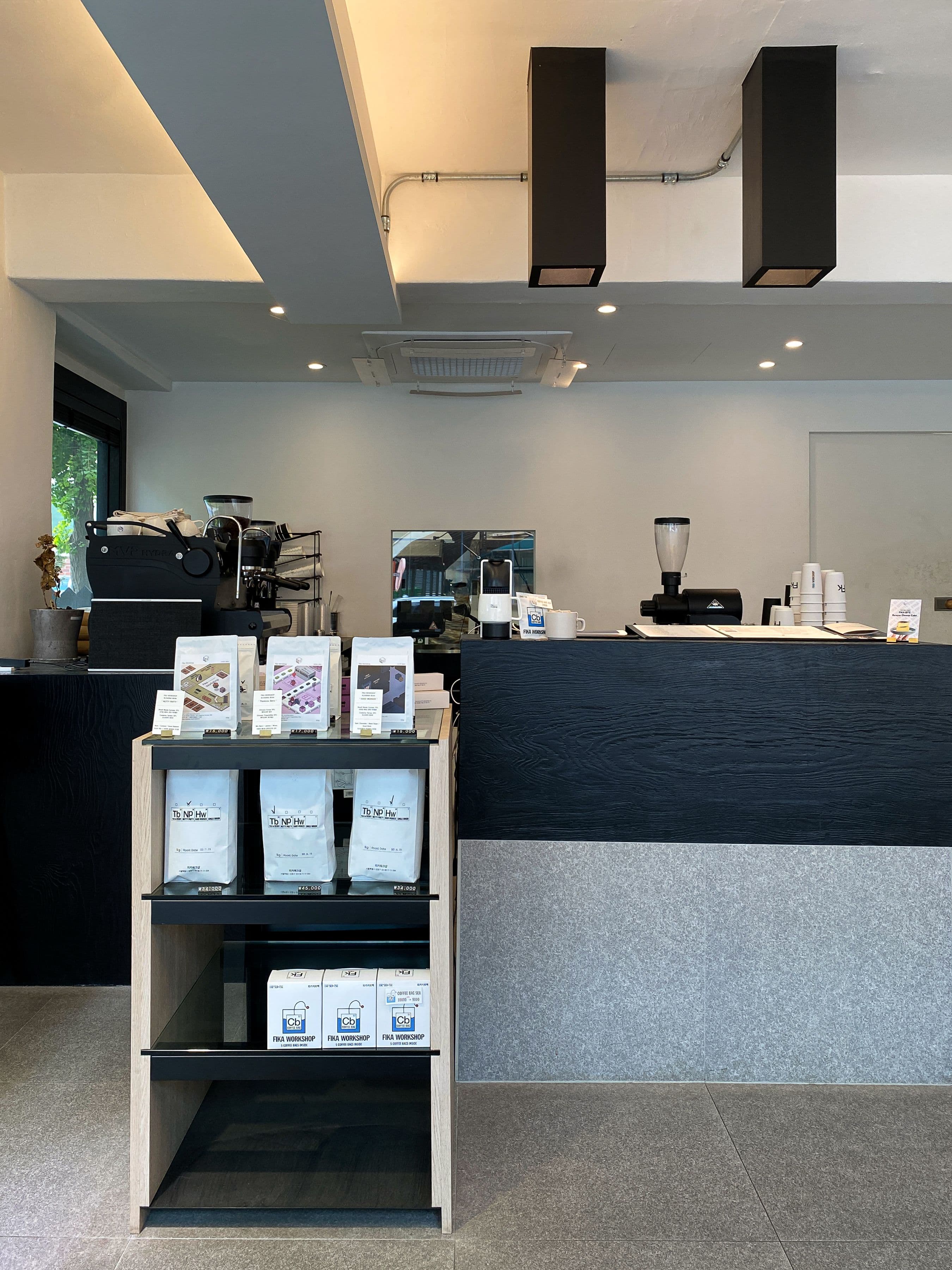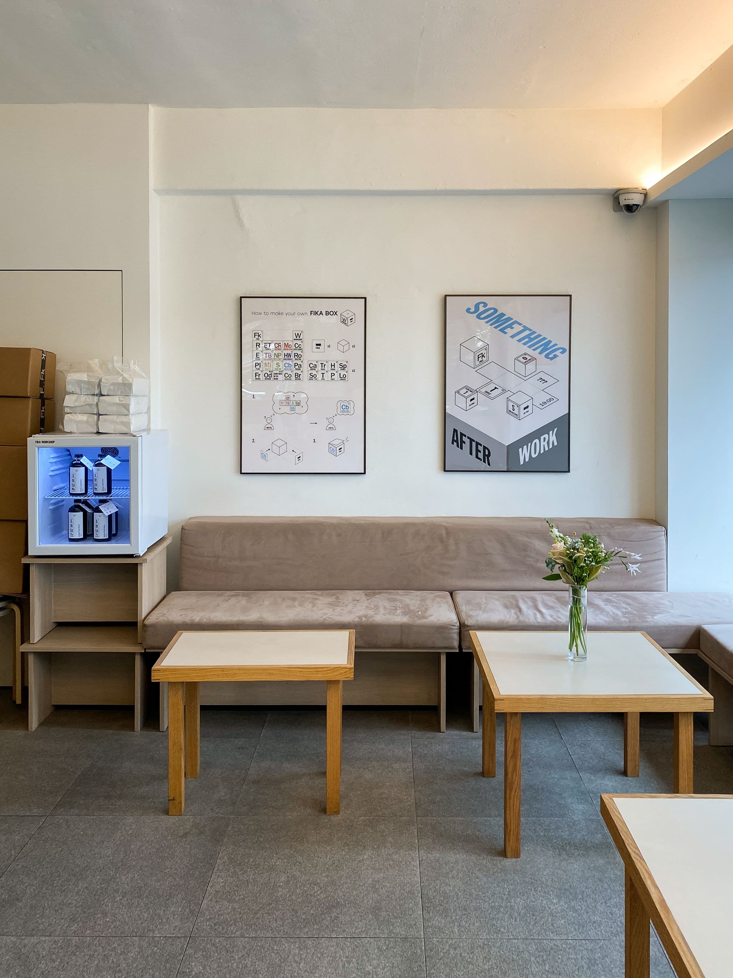 커피와 함께하는 휴식이라는 뜻의 ‘피카’와 작업장이라는 의미를 담은 ‘워크샵’, 이름에서부터 일과 쉼이 함께 있는 공간임을 알 수 있는데요. 이름뿐만 아니라 카페 인테리어에서도 이런 점이 느껴졌습니다. 앉아서 커피를 마시는 쪽은 우드와 베이지 톤의 밝은색 가구를, 커피를 만드는 공간과 커피 머신 등은 어두운 블랙 톤을 활용한 게 눈에 띄었어요. 색으로 휴식과 작업 공간을 구분하게 된 건 내부가 넓지 않아 파티션 역할을 하는 설비를 마련하기 어려운 점을 고려한 대표님의 아이디어라고 합니다.