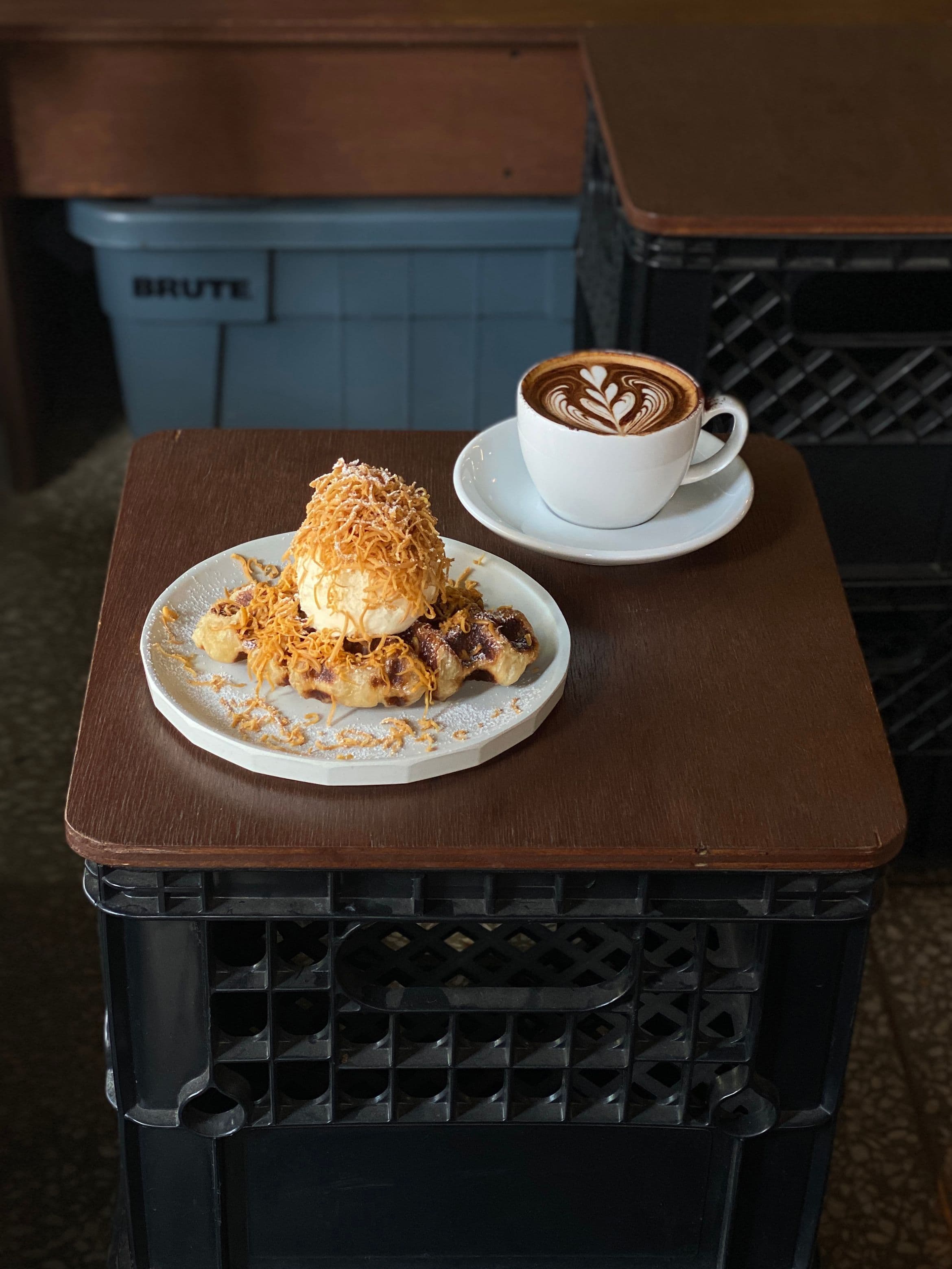 리커버리커피바는 필터 커피 맛집, 라테 맛집으로 이미 잘 알려진 곳이기도 합니다. 여러 메뉴들 중에서도 호주식 카푸치노는 대표님의 호주 워킹홀리데이 경험을 바탕으로 만들어진 시그니처 메뉴라고 해요. 우리가 흔히 알고 있는 카푸치노의 두툼한 거품보다는 조금 얇은 거품이 얹어지고, 그 위에 코코아 가루를 뿌려서 제공된다는 차이점이 있었습니다. 커피만 마시기 아쉽다면, 브라운 치즈와 아이스크림을 올린 크로플도 함께 드셔보세요. 겉바속촉과 단짠단짠이 어우러진 마성의 디저트랍니다.