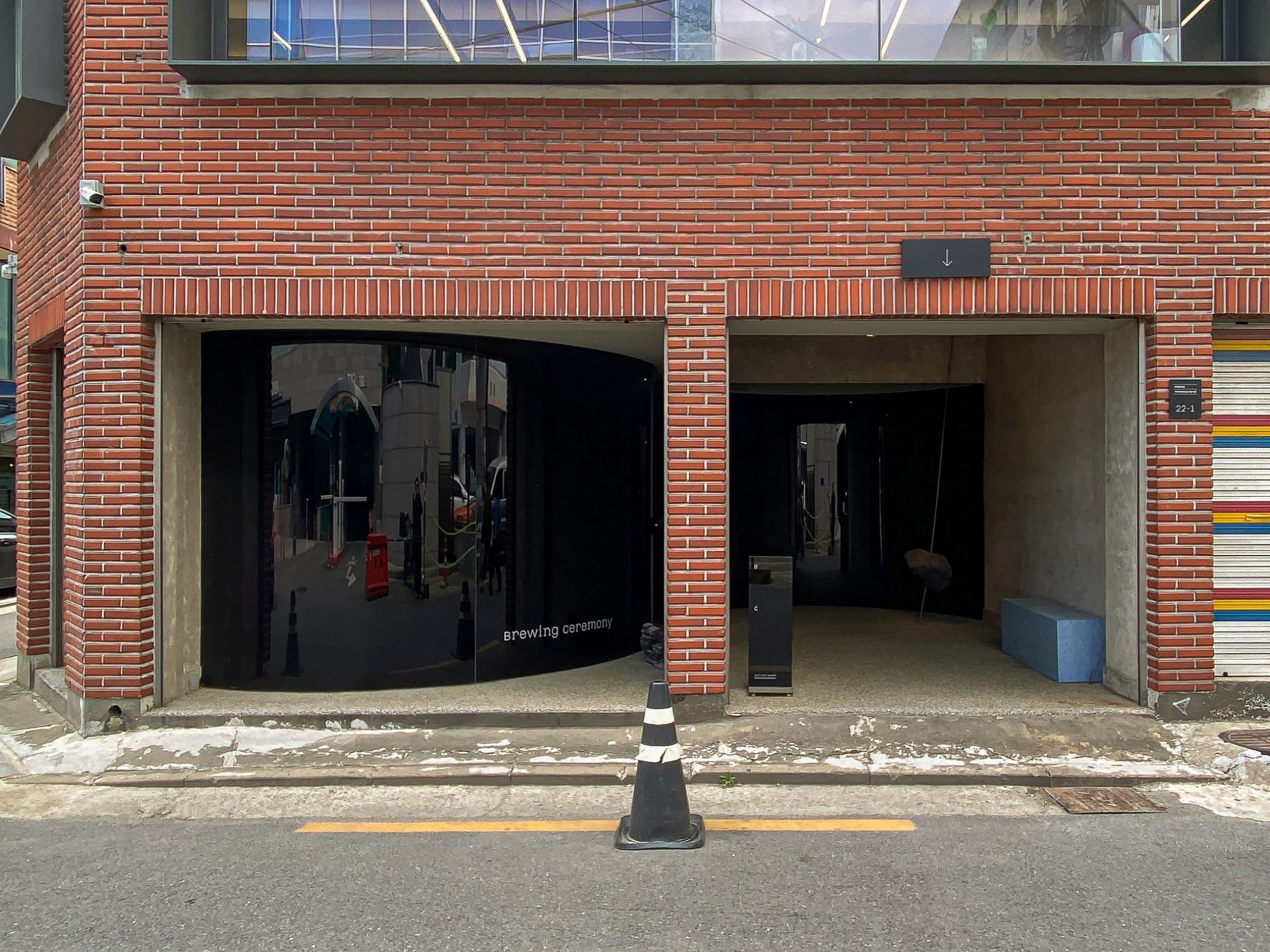 좋은 카페와 맛있는 음식을 찾는 이들로 붐비는 성수동에서, 조용한 카페를 찾기란 쉽지만은 않죠. 그렇지만 성수동 한복판에도 바쁜 일상과 잠시 멀어진 듯한 느낌을 받을 수 있는 카페가 있어요. 이번에 소개할 ‘브루잉 세레모니’는 내부가 전혀 보이지 않는 붉은 벽돌 건물의 통유리창 안쪽에 자리하고 있습니다. 길을 가다 새카만 유리창과 그 앞 자그마한 입간판이 세워진 것을 보고 어떤 곳인지 살펴보려 주변을 두리번거리는 분들도 꽤 있더라고요.