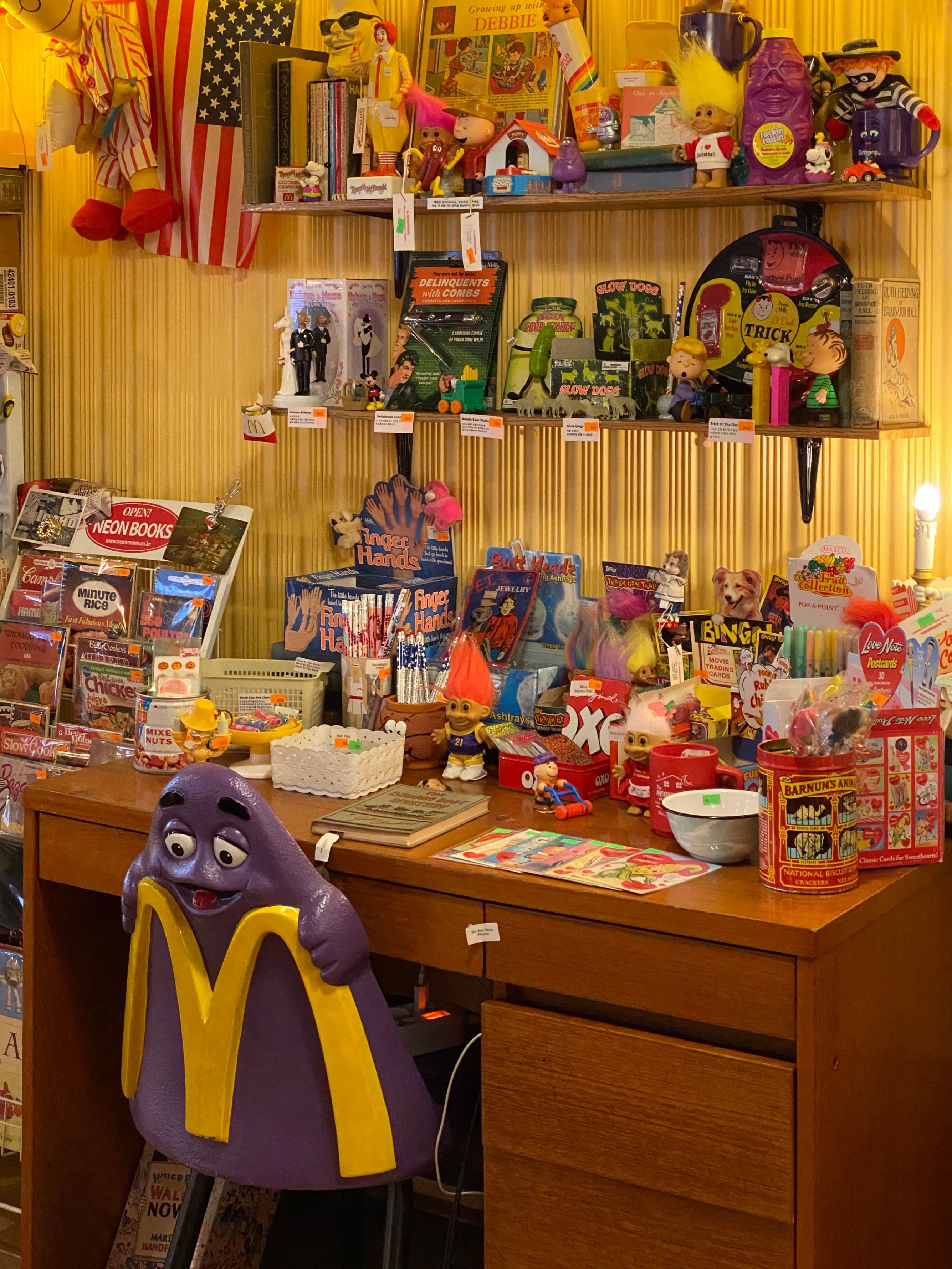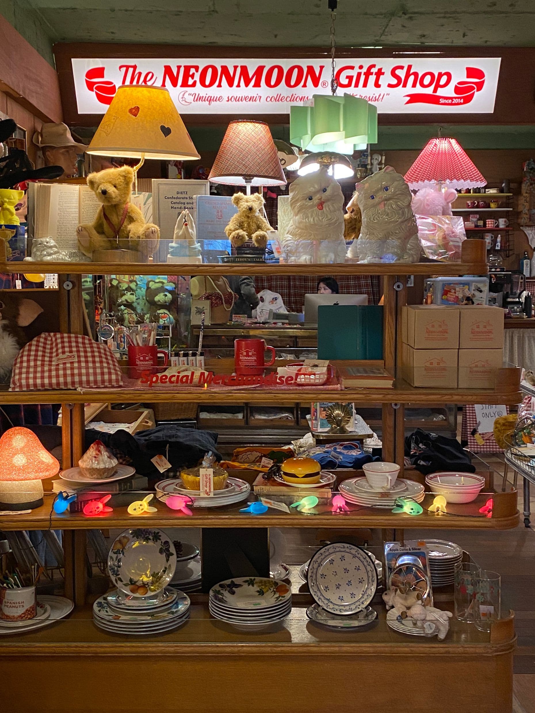 기프트샵의 분위기는 ‘알록달록, 아기자기, 올망졸망’ 세 단어로 표현할 수 있습니다. 동시에 ‘이런 아이템들은 도대체 어디서 구하시는 걸까?’ 하는 생각에 연신 눈이 휘둥그레지기도 해요. 장난감, 소품뿐만 아니라 접시나 컵 같은 생활용품들도 곳곳에 있고요. 더네온문 특유의 레트로 무드와 딱 맞는 제품들로 가득합니다.