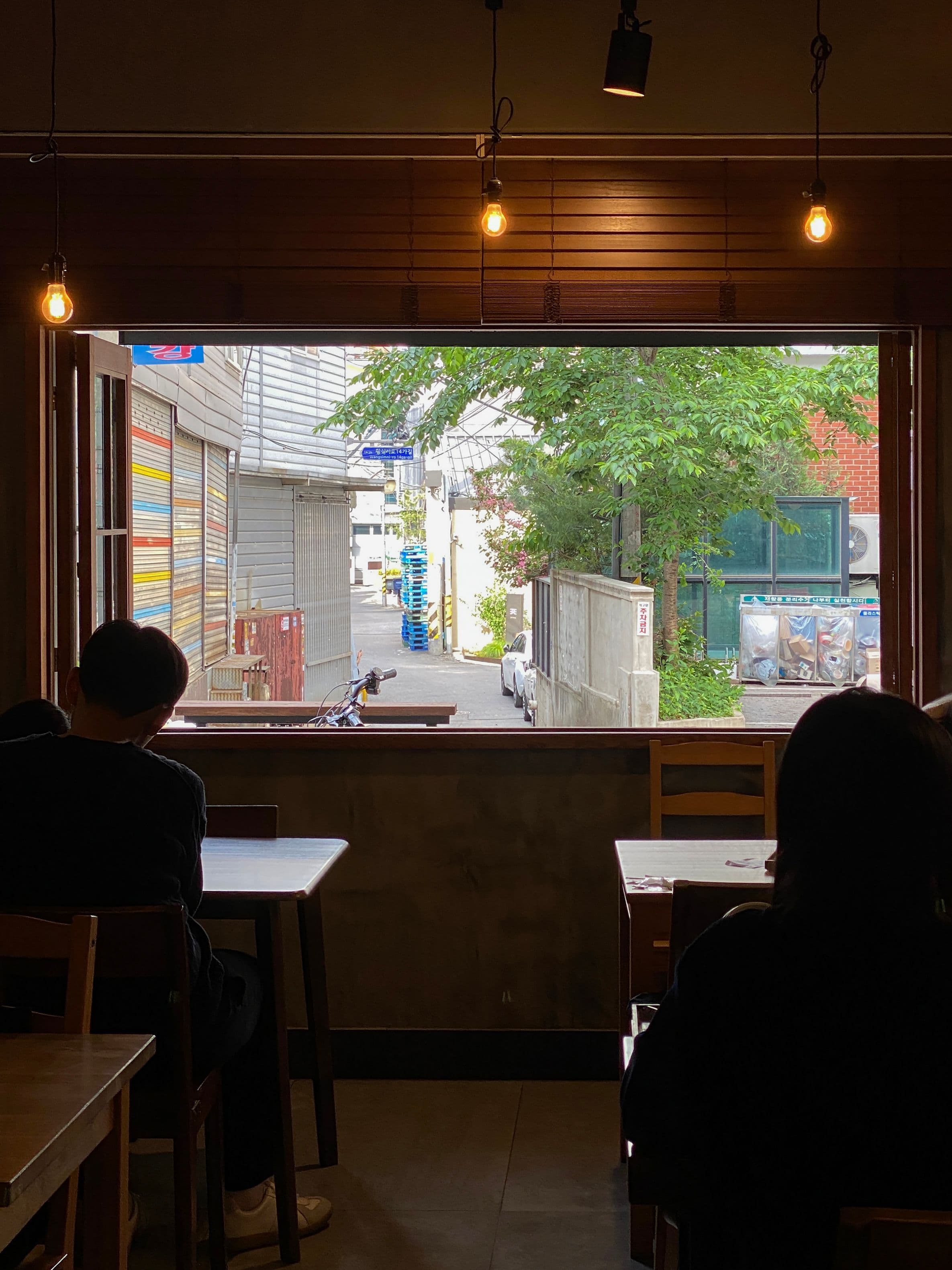 굴림이 성수로 옮길 때 한 가지 중요하게 생각한 조건이 있었다고 해요. 이전 매장과 마찬가지로, 유동 인구가 많은 곳이 아닌 ‘한적하고 아늑한 곳이었으면 좋겠다'는 점이었다고 하는데요. 이 조건과 일치하는 공간을 찾아 지금의 이 자리에 두 번째 매장을 열게 되었다고 합니다. 게다가 굴림에서 5분 정도만 걸어가면 한강 산책로가 있다고 하니, 최적의 선택이었다는 생각이 드네요. 성수로 매장을 옮기면서 논현동 매장에는 없던 테라스 공간도 새로 생겼는데요. 요즘 같은 날에는 테라스 자리에 앉아서 여유를 즐기는 것도 좋겠어요.
