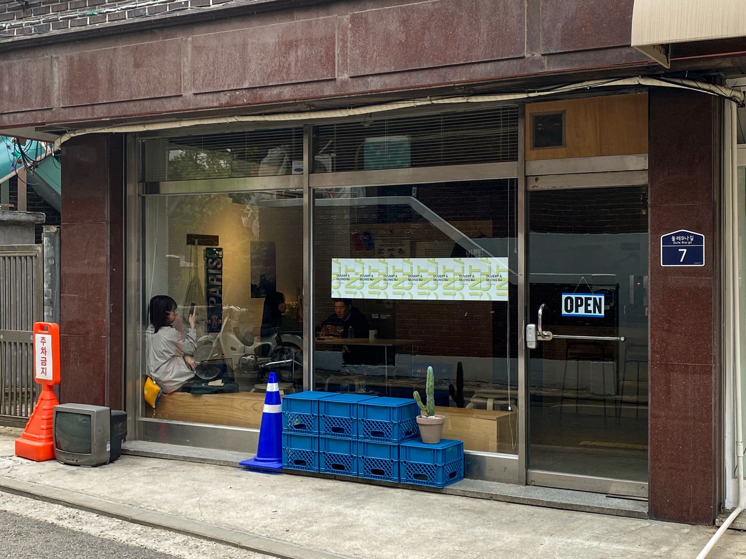 카페를 방문했을 때, 계동의 코런트를 아끼던 손님들을 자주 볼 수 있었는데요. 동시에 코런트를 성수에 새로 오픈한 곳으로 알고 오신 분들도, 카페 앞에 간판이 없다 보니 여기가 어떤 공간인지 물어보는 동네 주민분들도 만날 수 있었습니다.