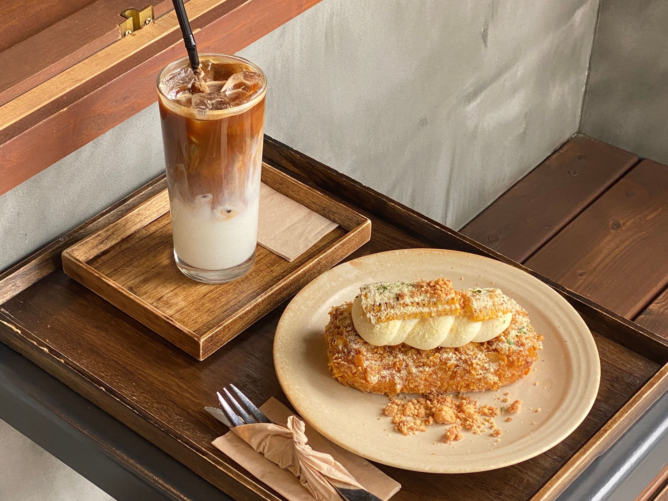 특히 초당 옥수수 페스츄리 이야기를 하지 않을 수 없습니다. 고소한 옥수수와 콘푸레이크, 단짠단짠 크림의 조화가 환상적이라 많은 이들의 입맛을 사로잡은 바이레인의 시그니처 메뉴로 자리 잡았다고 하네요. 마찬가지로 식전 인증사진을 부르는 비주얼도 바이레인만의 시그니처라고 생각합니다. 에스프레소 투 샷을 넣어 고소하고 진한 맛의 아이스라테와 함께 드셔보세요.