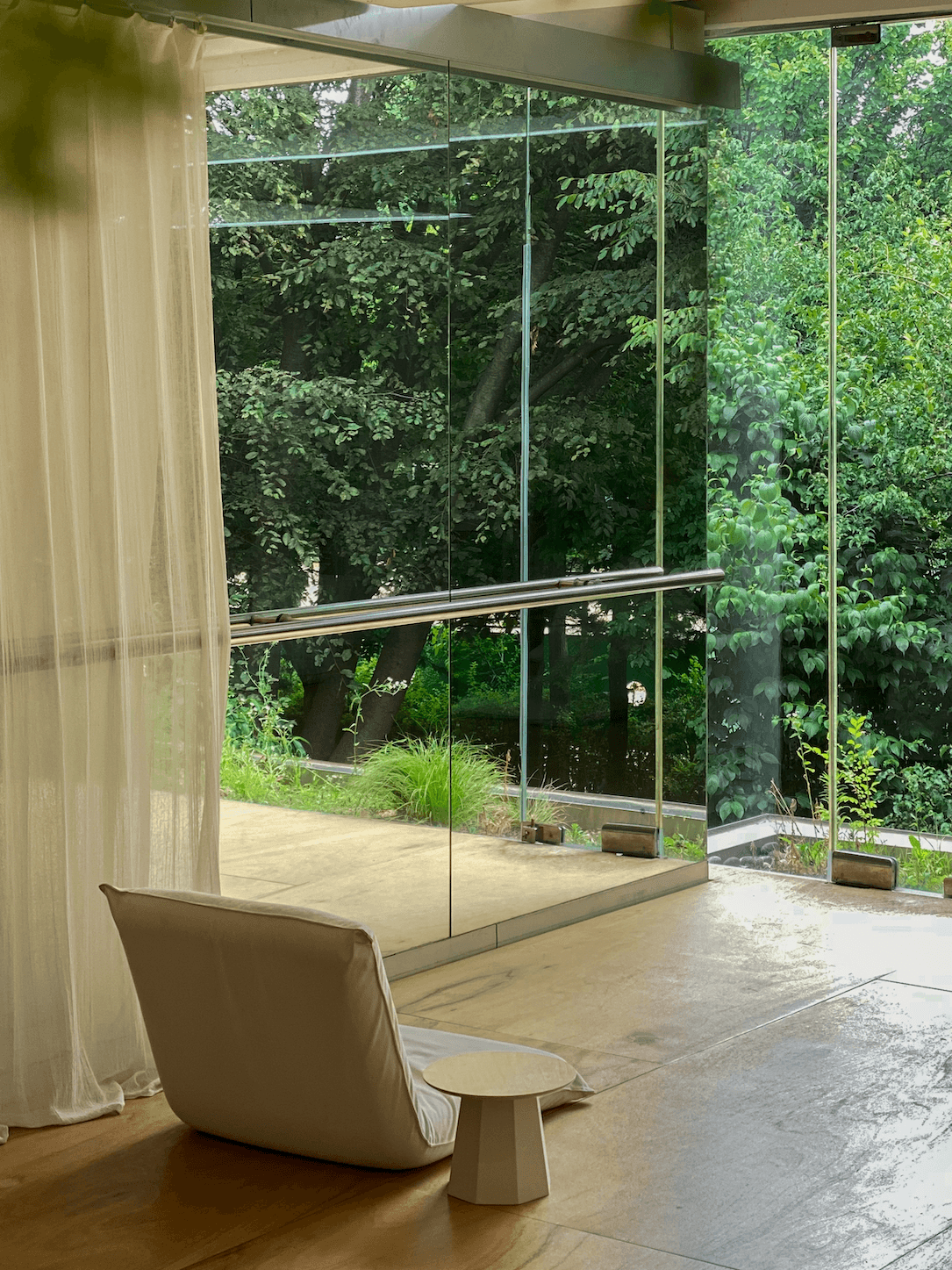 비 오는 날은 평소와 다르게 물기를 가득 머금은 풍경을 바라볼 수 있어 특별하죠. 서울숲을 마주 보고 있는 카페, 그린랩에서는 통창 너머로 촉촉하게 젖은 서울숲의 자연을 감상할 수 있습니다. 이곳에서는 ‘쉼’에 관한 여러 프로그램을 예약제로 운영하고 있는데요. 메인 프로그램인 ‘나만의 서울숲 즐기기’를 예약하면 계절에 어울리는 차와 꽃다발, 책, 필기구를 선물처럼 받아 오직 나를 위해 마련된 자리에서 여유로운 90분의 시간을 보낼 수 있어요. 일상에서 부산스러워진 마음, 빗소리를 들으며 그린랩에서 차분히 가라앉혀 보아요. 대화 소리와 카메라 셔터음에서 벗어나, 그저 서울숲을 바라보며 오롯한 쉼을 즐길 수 있을 거예요.