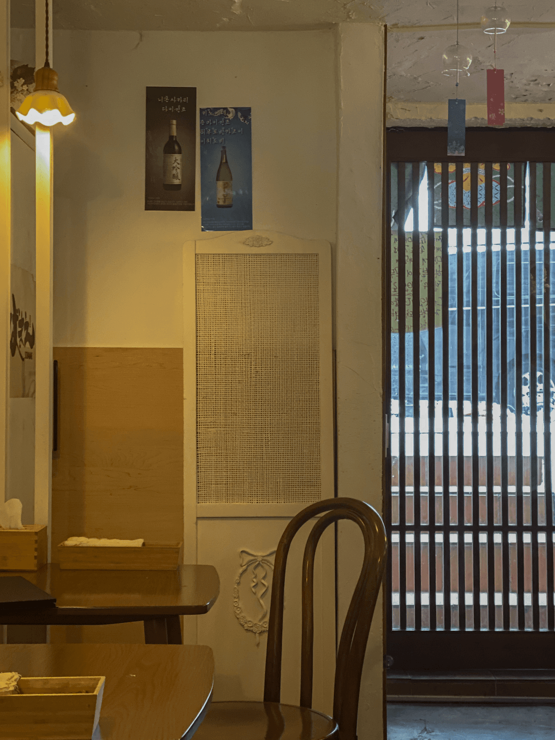 비 오는 날 막걸리에 파전이 뻔하게 느껴진다면, 낯설지만 궁금해지는 퓨전 한식에 술 한 잔 기울여 보세요. 성수역 3번 출구를 나와 골목을 들어서면 오래된 가정집을 개조해 만든 아늑한 보랏빛 공간이 모습을 드러내는데요. 이색적인 퓨전 한식 메뉴를 선보이는 와인 비스트로, 포도젝트입니다. 토마토소스를 곁들인 포천식 돼지고기와 대파구이, 갑오징어와 새우 돌김 부침개, 누룽지 카나페 등 궁금함을 자아내는 퓨전 한식 메뉴를 선보여요. 습도가 높아진 비 오는 날에는 당도가 적고 시트러스 향이 나는 와인이나 드라이한 전통 소주가 좋다고 해요. 보랏빛으로 꾸며진 구옥에서 즐기는 와인 한 잔과 퓨전 한식은 비 오는 날을 더 특별하게 만들어 줄 거예요.